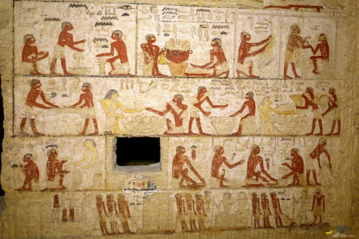 马斯塔巴不仅是墓葬建筑,更是古埃及人信仰体系的体现。古埃及人相信灵魂在死后依然存在,必须通过祭祀活动维持亡者的“卡”(Ka,灵魂的一部分)得以永生。马斯塔巴内设的祭祀厅和壁画为这种信仰提供了物质载体,壁画中常描绘亡者生前的生活场景、神祇形象以及祭祀仪式,寓意亡者在来世的幸福生活。